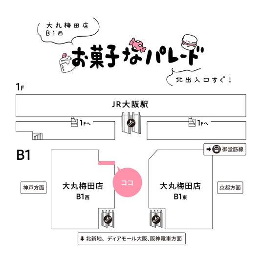 【場所】大丸梅田店 地1階西 出入口前 お菓子なパレード