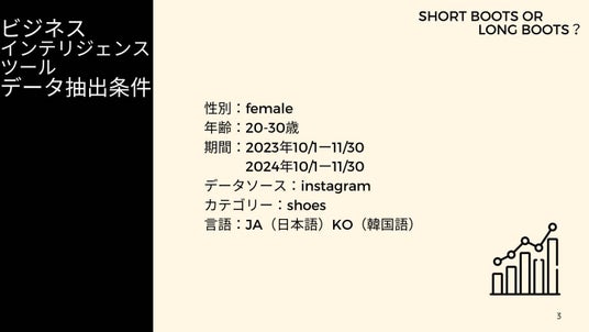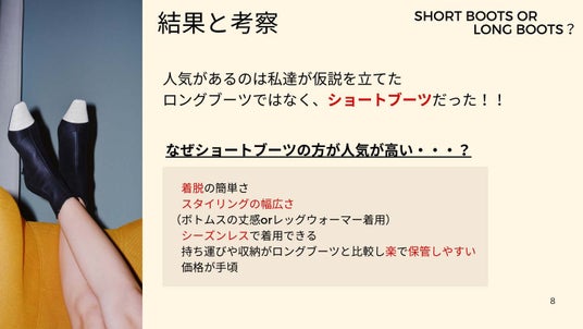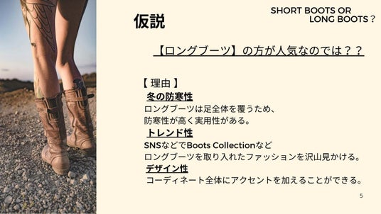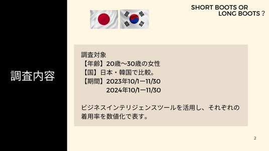 この授業内で、学生が実際に企画・データ分析した成果から、特に優秀と評価したレポートをシリーズで公開します。2025年第2弾のテーマは「ショートブーツとロングブーツの着用比率を日本・韓国で大解剖!」。