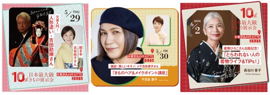 デザイナー:コシノジュンコ氏、俳優:若村麻由美氏などの著名人によるトークショー。雑誌『美しいキモノ』編集長が登壇するきものヘア&メイクポイント講座など、豪華なイベントが盛りだくさん!