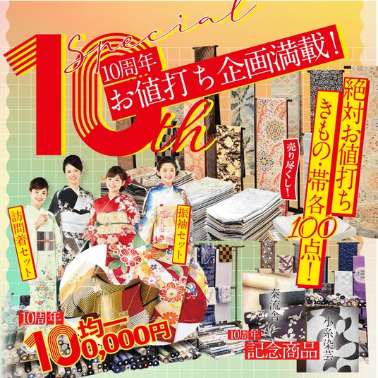 10周年目となる日本最大級の着物展示販売会を、2025年5月28日(水)より開催いたします。