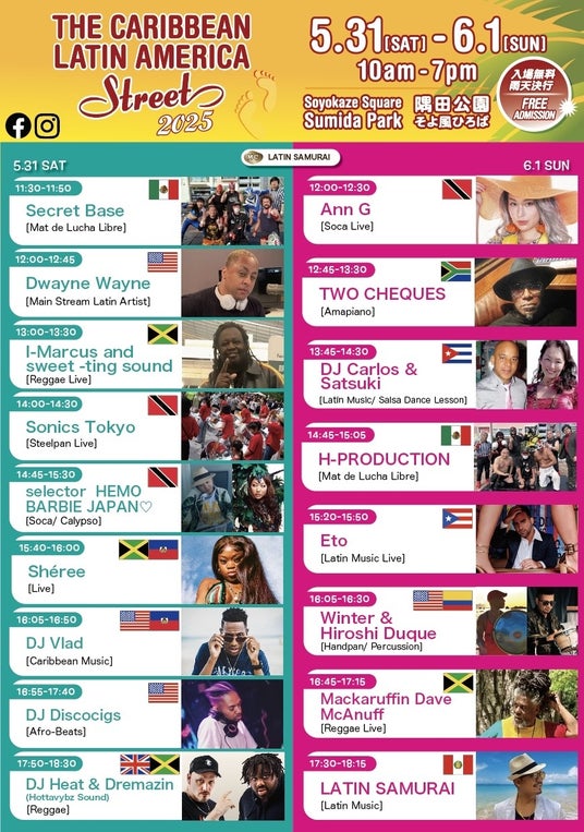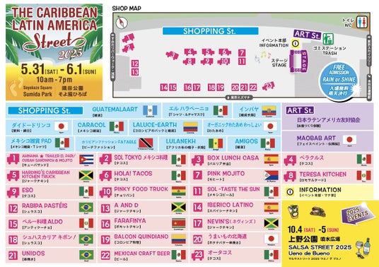 [出演者・出店ブース発表] カリブ・ラテンアメリカストリート2025 -5/31(土)6/1(日)墨田区隅田公園そよ風ひろば-