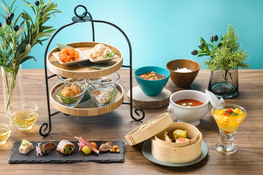 伝統的な広東料理や四川料理をベースに斬新なスタイルを融合させた創作中華を、コース仕立てのランチでゆったり満喫していただけるHALOW5周年記念ランチです。「都市のオアシス」で木のぬくもりを感じるボタニカルな木製メインプレートのスタンドには、人気のエビチリ&エビマヨをはじめ、鶏肉ではなく牛肉でアレンジしたよだれ牛や、四川料理で定番の雲白肉(ウンパイロウ)、さっぱり味わえる油淋鶏(ユウリンチー)に広東風仕上げの白身魚の蒸しものなど、モダンチャイニーズの世界をたっぷり味わえる内容です。デザートにはボリューム感のあるHALOWパフェに、食後のジャスミンティーでゆったりお寛ぎください。