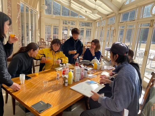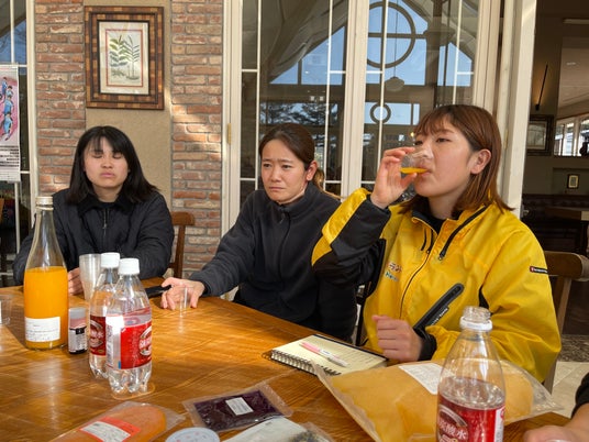 3月14日に行った打合せには、出口春奈、成迫実咲、辻野友実子、大森みさき、米澤萌香の5選手が参加し、富士桜高原麦酒の山本副醸造長が用意した20種類以上のフルーツ果汁をブレンドし、理想のビールの味わいを探求しました。