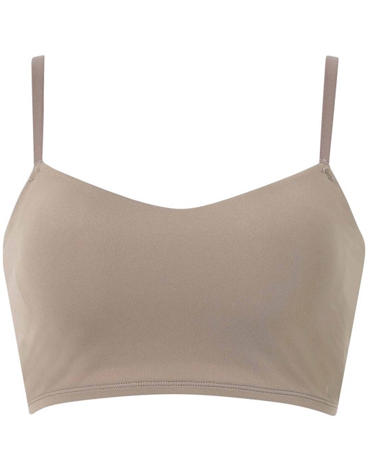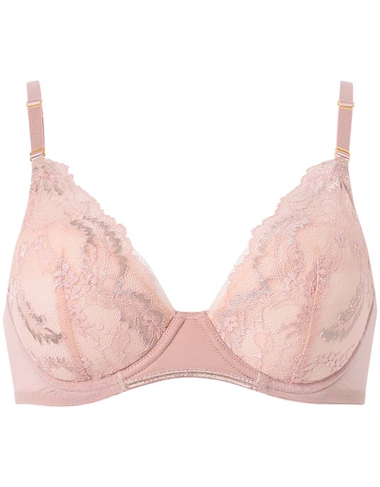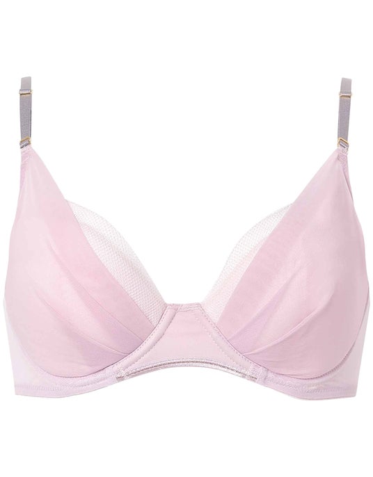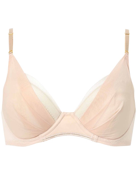 アンダーゴム不使用でラクなつけごこちなのに、左右一体型のカップがきれいなバストシルエットにととのえます。