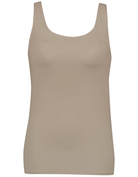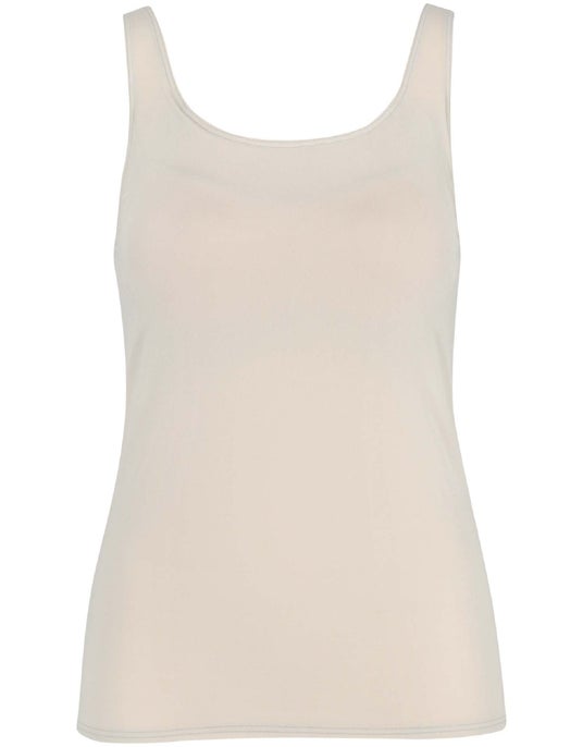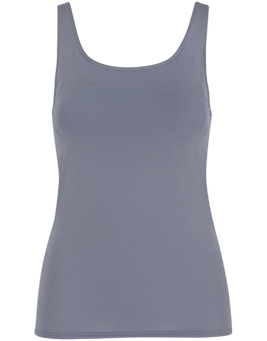 裏打ちのアンダーバスト部分は、ゴムをなくして圧迫感を軽減する設計に。背中部分の裏打ちには接触冷感性のある素材を使用し、汗が気になる背中もひんやりとさわやかに着用できます。