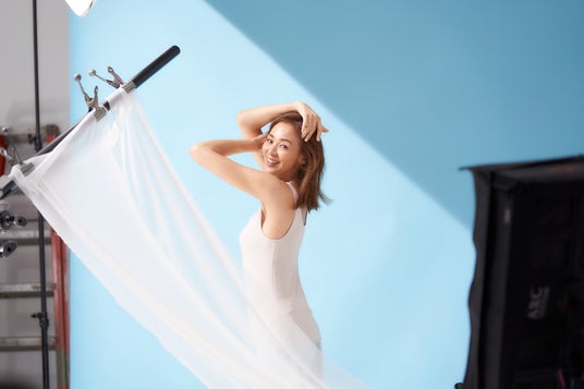 「着ごこちがラクで、シルエットがきれいで、ズレにくい」という特長を実感しました。「この特長を表現してください」と撮影中言われたのですが、実際その通りなので、魅せ方や表情などには苦労せず、自然に撮影ができました。ポージングのポイントは、おなかをひきしめて体をひねり、肩を上下につくることで綺麗に見せることができます。肩から肘まで斜めにラインができると立体的に美しく見えて、腰をひねると細く見えるので、これをベースにしてポージングしました。