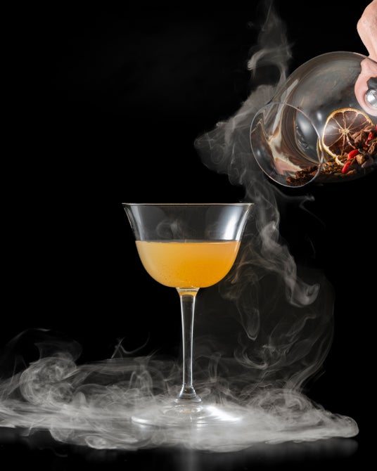 光の角度によって表情を変える、濁りを帯びたオレンジブラウン。グラスを覗き込めば、自然と歴史、そして未来へのストーリーが浮かび上がってくるようなカクテルです。