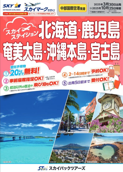スカイパックツアーズ株式会社(本社:東京都中央区、社長:横山正巳)は、スカイマーク公式サイトで販売するダイナミックパッケージ「たす旅」で、「かごしま・あまみ里帰りキャンペーン」を2025年5月14日(水)から2025年6月4日(水)までの期間限定で行います。対象となるのは5月15日(木)出発から10月25日(土)帰着のご旅行です。