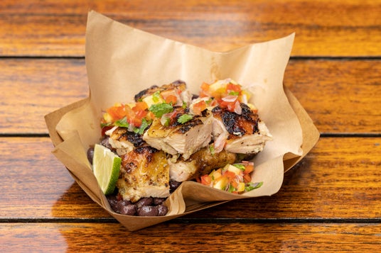 鶏もも肉、ライム、トロピカルサルサ