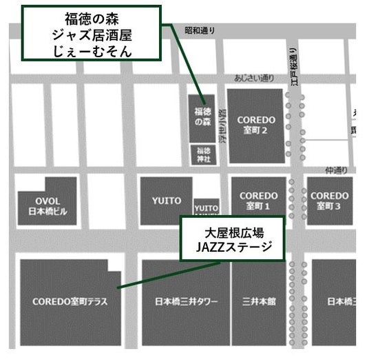 今年も、世界的に活躍するプロのミュージシャンが生演奏を披露し、クラフトビールとフードを楽しめる「コレド室町テラス大屋根広場 JAZZステージ」や、DJのセレクトするJAZZに合わせてハイボールを楽しめる「福徳の森 ジャズ居酒屋」など、音楽とあわせて食とお酒を楽しめるイベントコンテンツを展開します。
