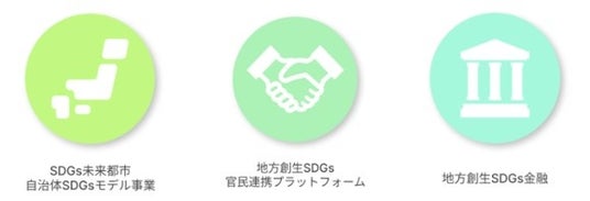 内閣府では、地方創生SDGsの推進に当たり、「SDGs未来都市・自治体SDGsモデル事業等」の選定、「地方創生SDGs官民連携プラットフォーム」の運営、「地方創生SDGs金融」の推進などに取り組んでいます。