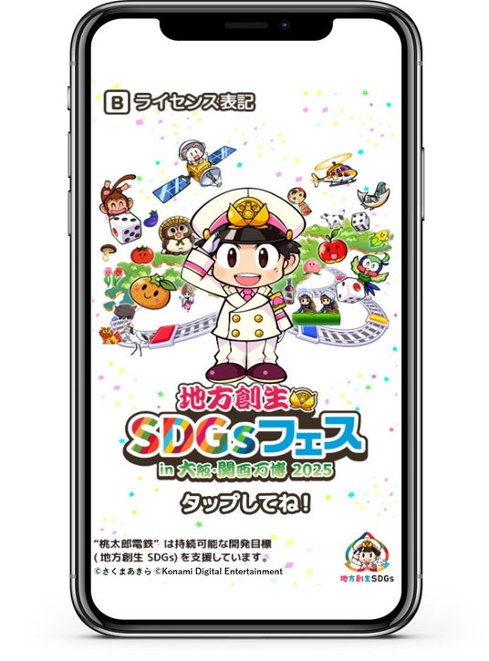 KONAMIでは、今後も地方創生SDGsを応援し続けるためのプロジェクトとして、「桃鉄白地図」を大阪・関西万博にあわせて始動します。「桃鉄白地図」は、日本全国のあらゆる自治体が、おすすめの観光地や特産品、地域振興の取り組みなどを、「桃太郎電鉄」の”物件”として登録することで、その魅力をPRできるWEBサービスです。地方創生SDGsフェス会場では、来場いただいた方に、一足先に、この「桃鉄白地図」を体験できるコーナーも設置します!「桃太郎電鉄」で地方の魅力を知り!そして地方へ!出発進行!