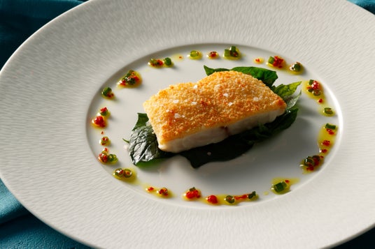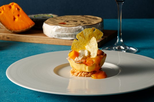 夏の訪れとともに爽やかな味わいをお楽しみいただけるようにと、ル・ノルマンディ料理長 花木洋一郎がそれぞれの料理にワインをペアリングし、チーズの旨味とワインの魅力を最大限に引き出すよう仕上げた極上の品々をご提供します。とろけるような食感のブラッティーナチーズに芳醇な旨味の生ハムとバジル風味のズッキーニソースを合わせた夏の香りを味わう前菜や、香ばしく焼き上げたチーズクルートを纏わせた魚料理は、表面はカリッと、中はふっくらと仕上げ、魚の繊細な味わいに爽やかな酸味のあるソースを合わせた夏らしい一皿です。日没の夕焼けや煌めく夜景など、刻々と変化する横浜港の美しい景色とともに、ワインとチーズが織りなす贅沢なマリアージュをご堪能ください。