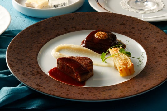 国産牛肉を2つの調理法で(フィレ肉のグリル、ホホ肉のワイン煮込み)