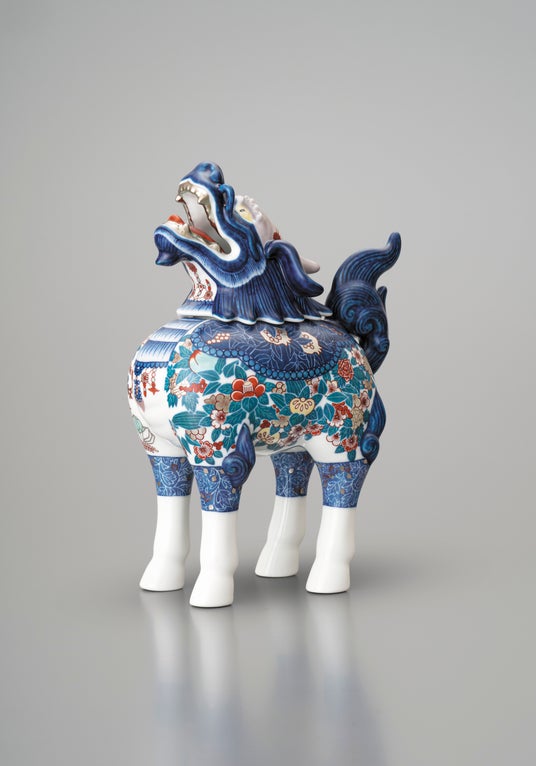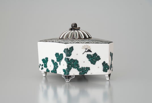 「色絵藍色墨はじき四季花文麒麟香炉」縦 8.2cm×横 15.2cm×高 21.0cm