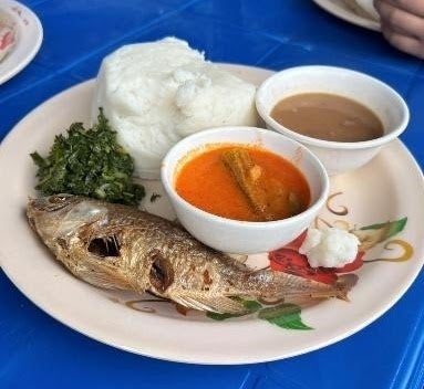 写真:ザンビアの主食であるンシマ(練りがゆ)とカレー