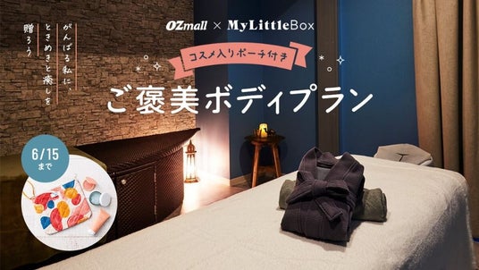 スターツ出版株式会社(本社:東京都中央区、代表取締役社長:菊地修一)が運営する会員450万人のおでかけ情報サイト「OZmall(オズモール」のリラクゼーションサロン予約では、 5/15(木)~6/15(日)の期間中、自宅にご褒美BOXが届くパリ生まれのサブスク「My little Box(マイリトルボックス)」とのコラボプランを販売します。OZで大人気の”プチご褒美ボディプラン”に数量限定でMy Little Beautyのコスメ入りポーチがセットに。新年度のスタートから今日までがんばった自分へ、ぜひ贅沢な体験をプレゼントしてみて。