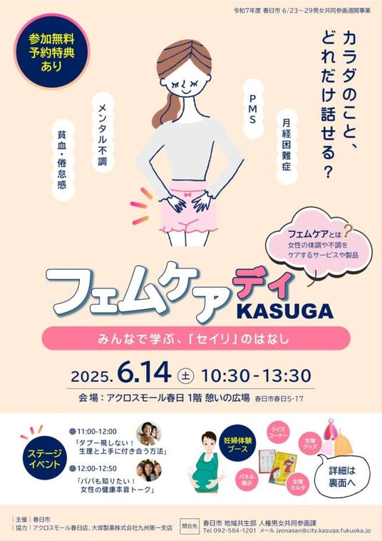 【福岡県春日市】「生理」をタブー視しない社会へ 6月14日(土)開催 ~フェムケアデイKASUGA 「みんなで学ぶ、『セイリ』のはなし」~