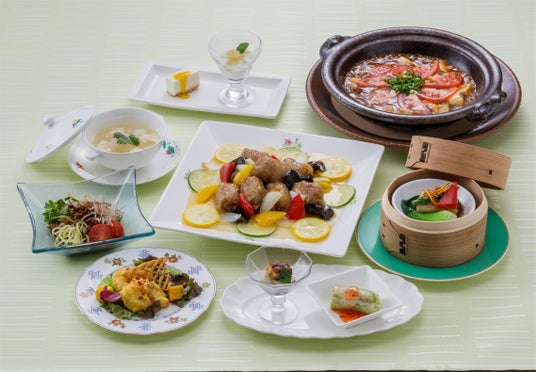 「湯葉と豆腐の店 梅の花」こだわりの湯葉や豆腐を使用し、鮑(あわび)や鰻(うなぎ)、冬瓜(とうがん)、マンゴーといった夏の味覚や旬の夏野菜をふんだんに取り入れた創作中華をご用意しました。