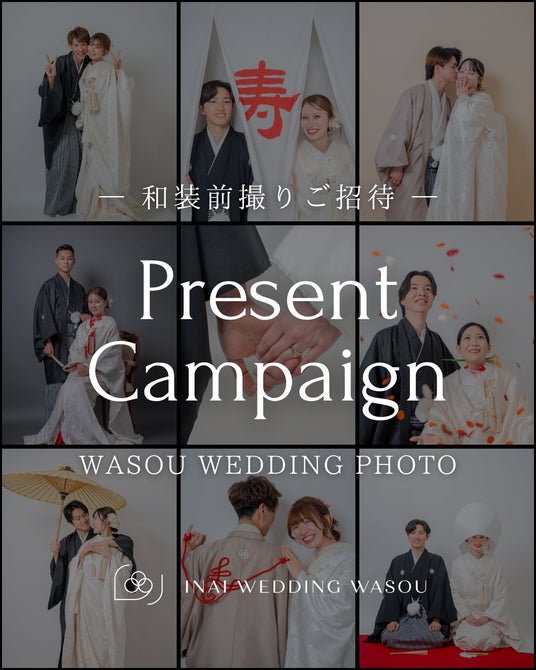 和装前撮りの新スタイルとして注目を集める**婚礼和装専門セルフフォトスタジオ「INAI WEDDING WASOU(イナイ ウェディング 和装)」は、2025年5月より、オープン1周年記念プレゼント企画【第4弾】を実施中です。