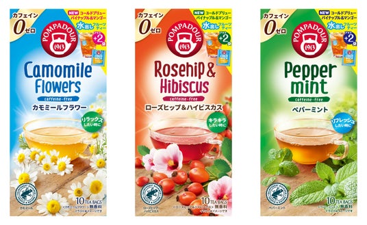 「ポンパドール」「クレイジーソルト」「茶語(Cha Yū)」「ティーブティック」を手がける日本緑茶センター株式会社(本社:東京都渋谷区、代表取締役社長:北島大太朗)は、ハーブティーブランド「ポンパドール」の『カモミールフラワー』『ローズヒップ&ハイビスカス』『ペパーミント』10ティーバッグ3品にて、『コールドブリュー パイナップル&マンゴー』2ティーバッグ増量キャンペーン品を5月16日(金)より販売開始いたします。