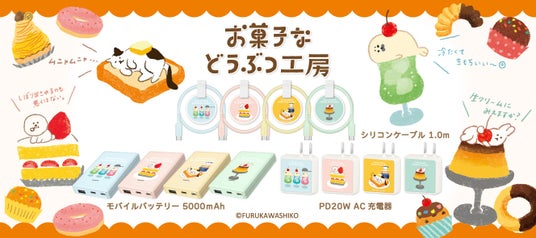古川紙工×多摩電子工業 コラボ企画 お菓子などうぶつ工房モバイルバッテリー・AC充電器・タイプCケーブル発売!