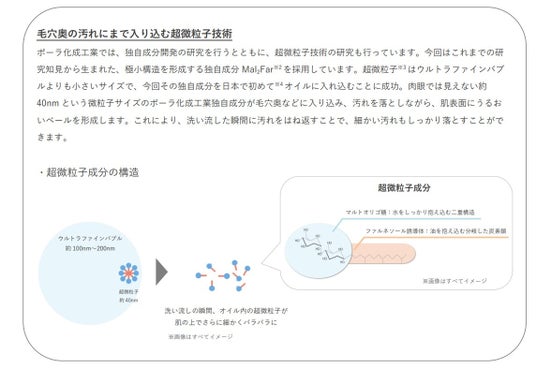 ※1 ポーラ化成独自の(C12-20)アルキルグルコシド(保湿)で形成するミセルから、汚れをはね返す水の膜をつくる技術が日本初(2024 年 12 月時点、J-GLOBAL による自社調べ)