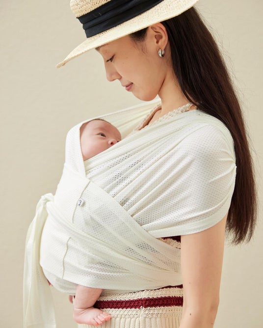 「コニー抱っこ紐 FLEX AirMesh(TM)」:夏場の抱っこもより快適に。ぐっすりねんね。通気性に優れたAirMesh素材を使用した抱っこ紐。接触冷感、抗菌防臭機能で、より快適に。