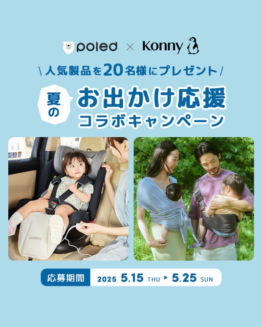 近年夏場の猛暑が年々厳しさを増す中、小さなお子さまと外出する保護者の熱中症対策への関心が高まっています。こうしたニーズを受け、PoledとKonnyは子育て世代の“夏のお出かけ”を少しでも快適に・安全にサポートしたいという想いから、両ブランドの人気商品を組み合わせたキャンペーンを企画いたしました。