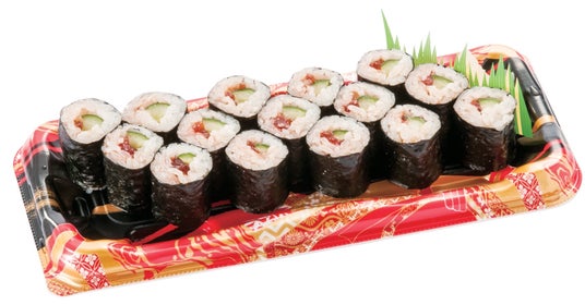 筋子の赤と、きゅうりの緑がまるでマンボの衣装のようだと名付けられた「マンボ巻き」。