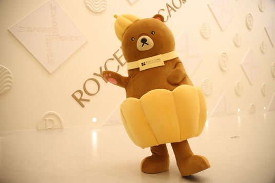 カカオポッド(チョコレートの原料・カカオの実)の帽子がチャームポイントの、施設のマスコットのクマ。隣接のロイズタウン工場直売店では、このカカオクマを模したチョコレートやグッズもあり、お土産としても人気です。