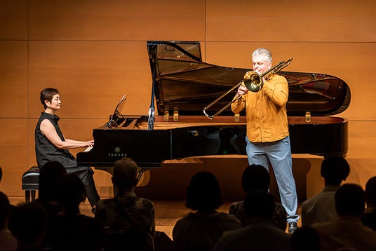 レッスン主体の「アカデミー」に対して、「フェスティヴァル」では複数のコンサートや特別講座を開催します。「オープニングコンサート」では、アカデミー教授陣と国内の一流アーティスト、そしてヤマハ吹奏楽団による、スペシャル吹奏楽コンサートを開催。プログラム前半は木管五重奏・サクソフォン二重奏・金管五重奏でそれぞれの楽器の音色を堪能していただきつつ、後半は特別編成のオーケストラで盛り上がる趣向です。また、アカデミー開講期間中には教授陣および受講生によるアンサンブルコンサートを開催。そして今年は、管楽器の第一人者であるシカゴ交響楽団首席チューバ奏者のジーン・ポコーニーが、次世代のすべての管楽器奏者に向けて、自身の経験と知識を余すところなく語る特別講座を実施します。「第31回 浜松国際管楽器アカデミー&フェスティヴァル」の詳細は下記のとおりです。