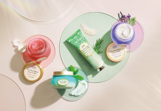 新世代「フェイスポリッシャー コレクション」は角質ケアと洗顔に加え、バランシング機能を新たに搭載。ミント、ラベンダー、ローズマリーなど、厳選した花々やハーブが肌に寄り添うように皮脂バランスや日々の揺らぎをすこやかに整えます。