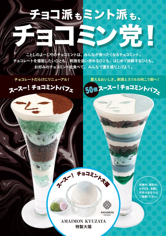 そして、ことしは「チョコが多いチョコミントが好き」というリクエストにお応えして、「スースー!チョコミントパフェ」をチョコレートだらけにリニューアルいたしました。