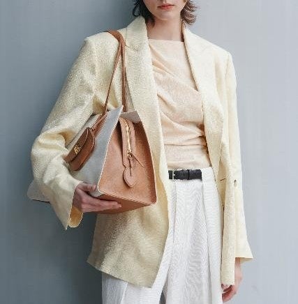 高級イタリア製ペブルド牛革は、しなやかで柔らかな触感を提供し、デザインに心地よい感触を加えています。繊細なレザーの質感と温もりのある色合いが美しく調和し、さりげない贅沢感が上品なムードを一層引き立てます。