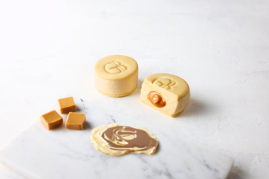 アンバーチョコレートをベルギー産発酵バターに混ぜ込み、淡い黄色のなめらかなバタークリームに仕上げました。サクッと軽いサブレと、甘くてちょっとほろ苦いキャラメルフィリングが、バターの豊かな味わいを引き立てます。