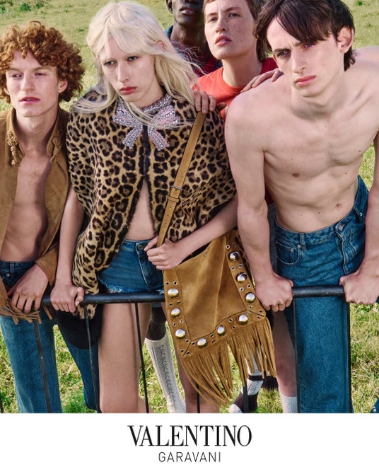 1960年代後半のスピリットを呼び起こすヴァレンティノ ガラヴァーニ ‘ネルコート’ ファミリーは、メゾン ヴァレンティノのコレクションにおいて引き続き中心的な役割を担います。シグネチャーであるヒッピーシックな魅力を放つグループは、今シーズン、上質で新しいテクスチャーと大胆で装飾的なエレメントをまとい、さらなる進化を遂げています。