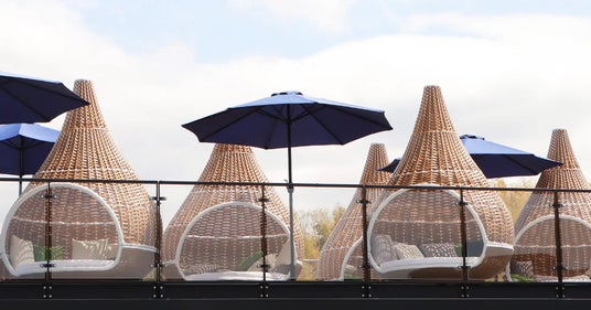 ANTIQUA TREE CAFEの2階テラス席。非日常感たっぷりのドーム型チェアでゆったり過ごせる人気スポット。