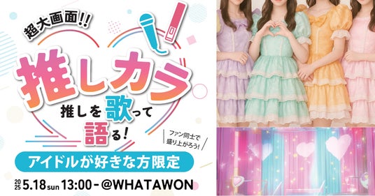 アイドル好き限定!カラオケで“推し”を語り尽くすファンイベント『推しカラ』が、南大阪のエンターテインメントモール「WHATAWON」にて2025年5月18日(日)に開催されます。