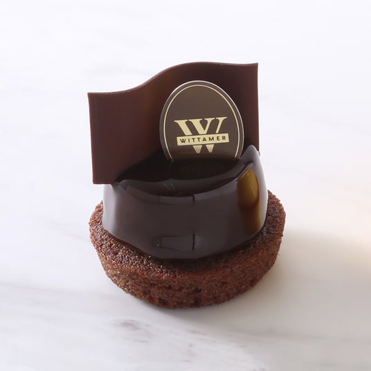 マラカイボ産カカオを使用したチョコレートムースに、なめらかなクリームブリュレをとじ込め、ショコラ生地に重ねました。