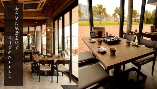 海辺の美しい景色と、こだわりの沖縄食材を使ったしゃぶしゃぶ・炉端焼きを同時に楽しめる「オーシャンBoo!」