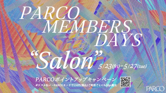 PARCO MEMBERS DAYS ”Salon”PARCOメンバーズのための、特別な5日間。PARCOポイント+3ptのポイントアップキャンペーンや、プレミアムステージ限定プレゼントのほか、全国のPARCOで限定特典や優待を受けることができます。