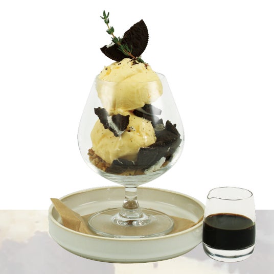 特徴:Hasaba Coffee Roastersの高品質なエスプレッソを使用。冷たいアイスクリームに温かいエスプレッソをかける瞬間も楽しめる、本格的なデザートです。トッピングは2種類のクッキーからお選びいただけます。