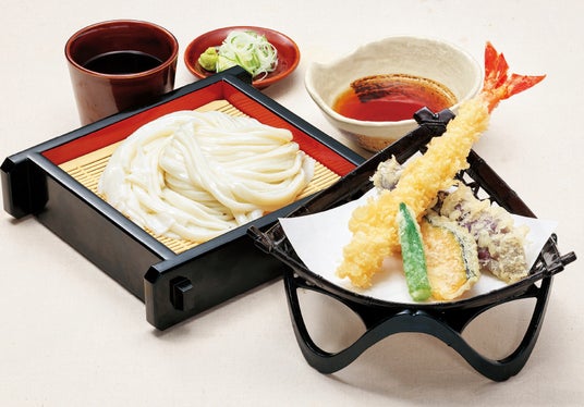 つるつる・もちもち食感の「手延べうどん」と、揚げたてサクサクの「大海老天ぷら」がお楽しみいただけます。