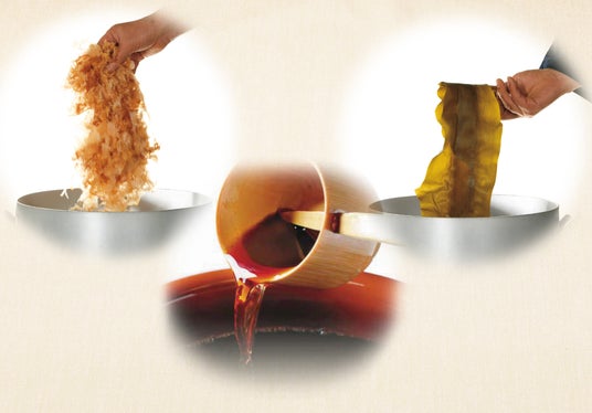 「北海道産利尻昆布」と「かつお節」「うるめ節」「さば節」を使用し、毎日店舗にて無添加の『出汁』を引いています。