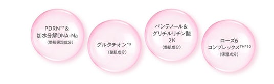 *10 ダマスクバラ花水、センチフォリアバラ花水、カニナバラ果実エキス、ハイブリッドローズ花エキス、モスカータバラ葉エキス、カニナバラ花エキス(すべて保湿成分)