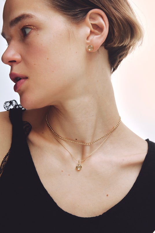 tender necklaceと重ねて着用すれば、より奥行きと洗練感のある仕上がりに。