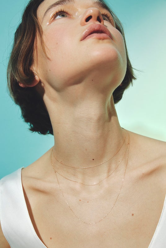 繊細なチェーンが肌に溶け込むように馴染み、身につける人の美しさや柔らかさを引き出します。
