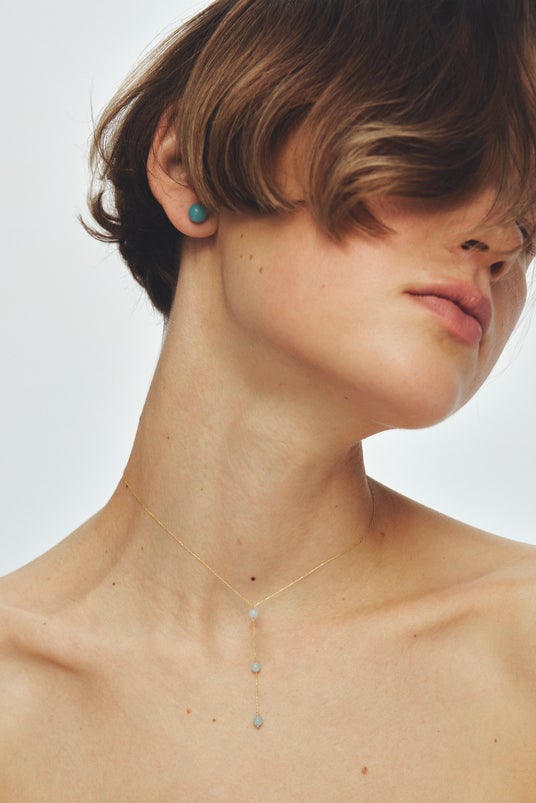 明るさと穏やかさが共存するターコイズブルーの天然石が、肌に美しく映えます。