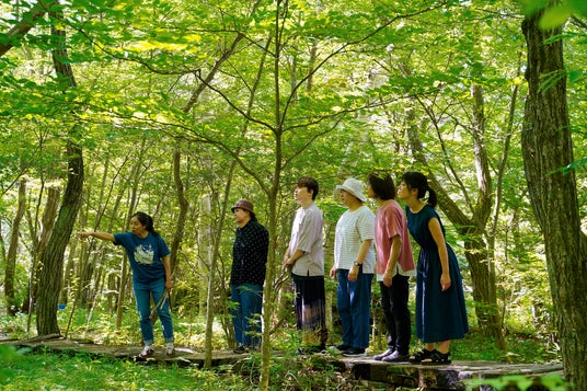 香りのある葉を嗅いだり、鳥の声に耳を澄ませたり、ひんやりと湿った苔に触れたり……ただ歩くだけでは気が付かない森の細部まで五感を広げて、自然の中に浸る時間を過ごします。